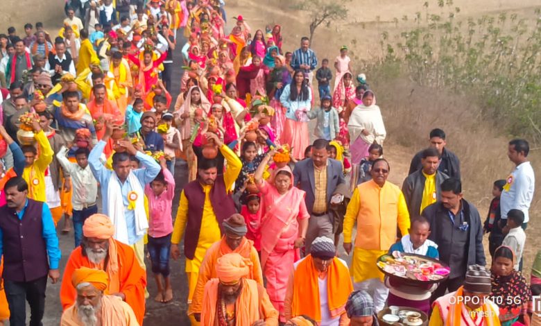 बलरामपुर/अनिल यादव/बलरामपुर जिला के रामानुजगंज विकासखंड के अंतर्गत ग्राम पंचायत पलगी में श्री लक्ष्मी नारायण महायज्ञ का व्यभव आयोजन किया गया है जिसमें यज्ञ कर्ता श्रीमद् जगद्गुरु योग गुरु, योगी योगेश्वर जी महाराज के तत्वाधान में कराया जा रहा है तथा श्री राम कथा का दिव्य आयोजन एवं धाम वृंदावन के दिव्य रासलीला का भी आयोजन किया गया है जिसमें दिनांक 31 दिसंबर से 6 जनवरी 2022 तक काथा वचन तथा रासलीला कराया जा रहा है तथा कलश यात्रा दिनांक 02 जनवरी 2023 दिन सोमवार से यज्ञ प्रारंभ किया गया और यज्ञ की पूर्णाहुति 6 जनवरी 2023 को की जाएगी। यज्ञ के प्रथम दिन कलश यात्रा में श्रद्धालु भक्तों की उमड़ी काफी भीड़ जिसमें छत्तीसगढ़ के पूर्व गृहमंत्री माननीय श्री रामविचार नेताम एवं उनके धर्मपत्नी जिला पंचायत सदस्य श्रीमती पुष्पा नेताम जी भी उपस्थित रहें। और लक्ष्मी नारायण महायज्ञ के प्रथम दिन कलश यात्रा में उमड़ी भीड़ को देखने में भक्तजनों में काफी खुशी एवं उत्साह देखने को मिल रहा है।