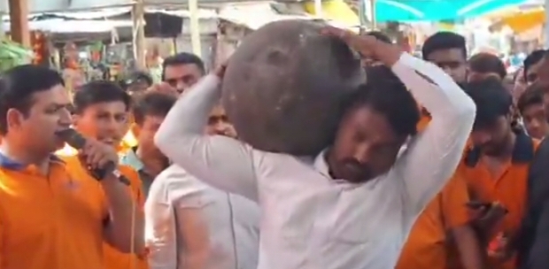 शिरडी, महाराष्ट्र: हनुमान जयंती पर आयोजित हुई 125 किलो बजरंग गोटा उठाने की प्रतियोगिता