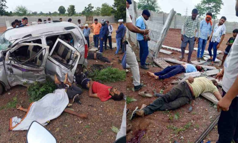 दर्दनाक हादसा : दीवार से टकराई तेज रफ्तार कार, तीन लोगों की मौत, दो की हालत गंभीर, कार के उड़े परखच्चे…..