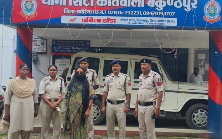 आरोपिया: अनीता साहू, उम्र 36 वर्ष, पत्नी चन्द्रप्रकाश साहू, निवासी तलवापारा बैकुंठपुर