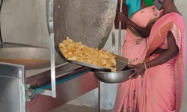 गोठान में महिलाओं ने आलू चिप्स उत्पादन में भी आजमाया हाथ…….