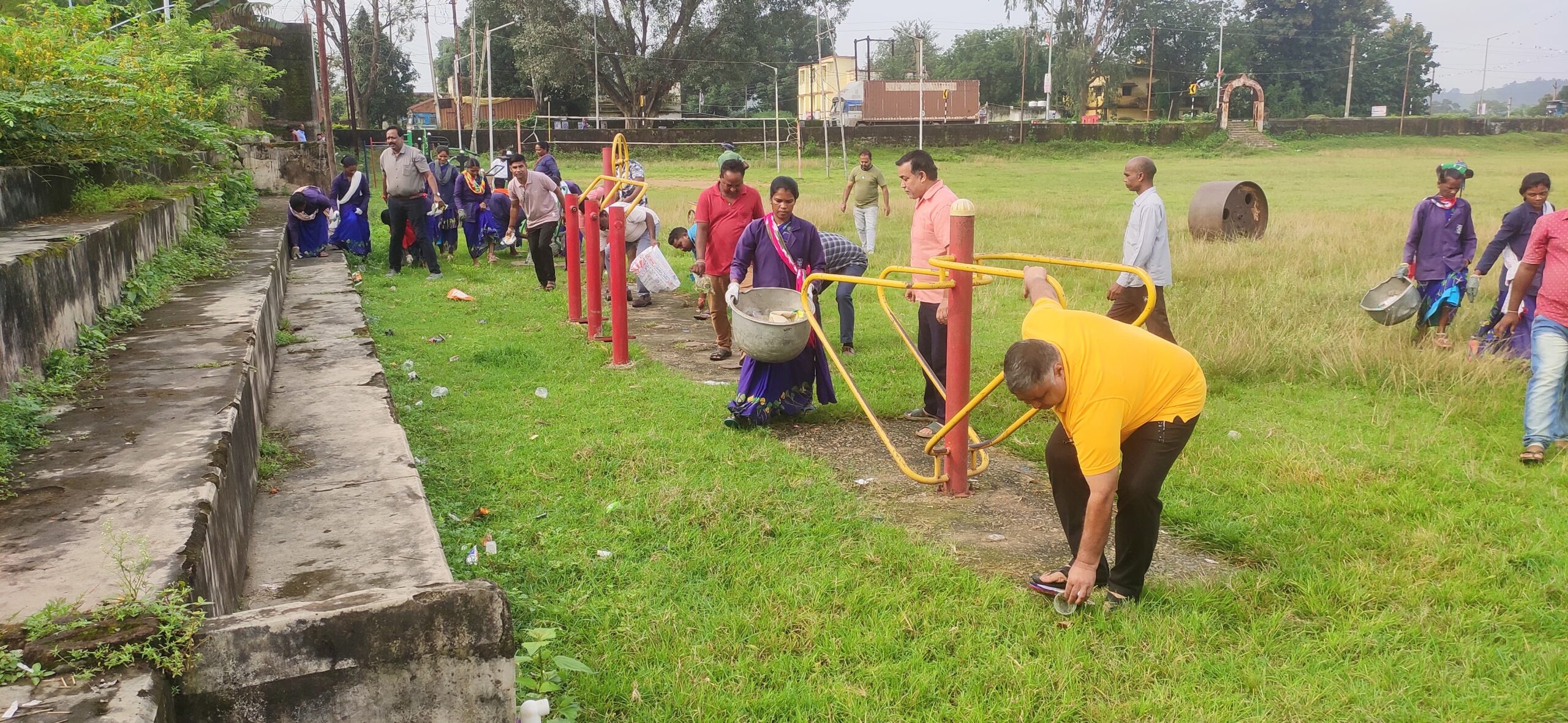 सुबह 8 बजे मिनी साक्षरता स्टेडियम में कैबिनेट मंत्री राजेश अग्रवाल के नेतृत्व में कार्यकर्ताओं ने ग्राउंड की साफ-सफाई की और मंच का रंग-रोगन कर परिसर को सुसज्जित किया। मंत्री अग्रवाल ने स्वच्छता को जन-आंदोलन बनाने का आह्वान किया।