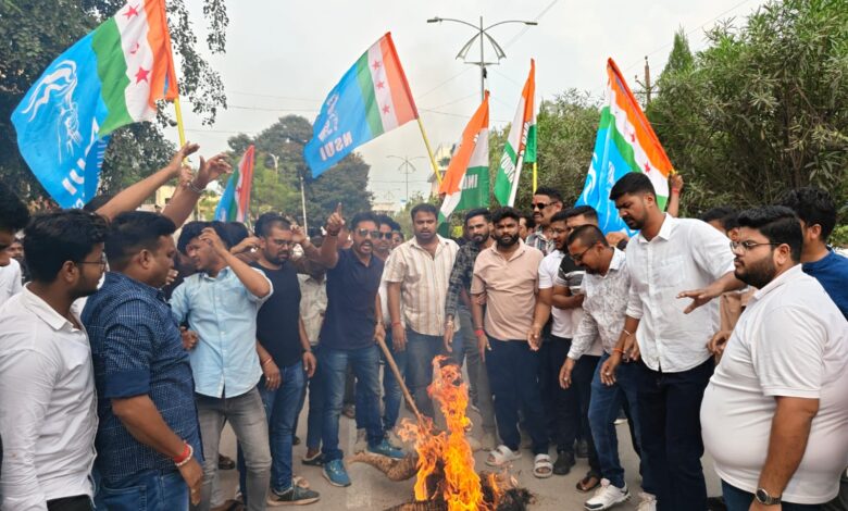 युवा कांग्रेस-NSUI ने सरगुजा में किया उपमुख्यमंत्री विजय शर्मा का पुतला दहन