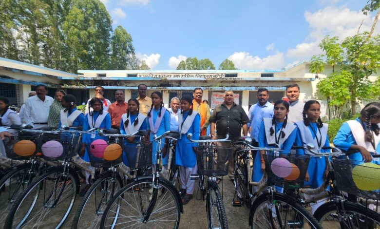 लटोरी स्कूल में मंत्री राजेश अग्रवाल ने सायकल वितरण और मेधावी छात्राओं का सम्मान किया