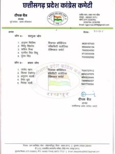 प्रदेश कांग्रेस अध्यक्ष दीपक बैज के हस्ताक्षरित आदेश में रायपुर, बिलासपुर, दुर्ग, सरगुजा और बस्तर ज़ोन के लिए रीजनल कोऑर्डिनेटर, पब्लिसिटी वॉलंटियर और टेक्निकल सपोर्ट टीम की आधिकारिक सूची जारी की गई है।