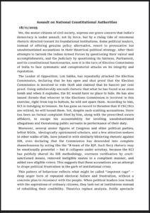 और अब चुनाव आयोग को “सुनियोजित और साजिशन बदनाम” किया जा रहा है।