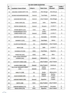 2014 बैच की टॉपर शक्ति दुबे को भी इस बार उनका पसंदीदा होम कैडर उत्तर प्रदेश आवंटित किया गया है। इसी तरह: