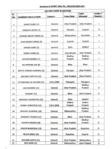 DoPT ने IAS 2024 बैच के लिए कैडर आवंटन जारी किया। यूपी के कई अधिकारियों को मिला होम कैडर, वहीं अन्य राज्यों के 20 IAS को भी दिया गया उत्तर प्रदेश कैडर। प्रोबेशन के बाद जिलों में SDM के रूप में होगी तैनाती।