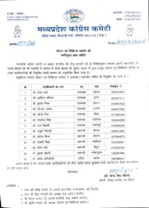 MP कांग्रेस डॉक्टर एवं चिकित्सा प्रकोष्ठ की प्रदेश कार्यकारिणी घोषित, जीतू पटवारी के निर्देश पर नियुक्तियां