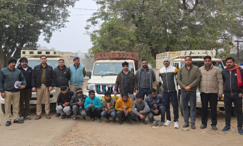 7 आरोपी धराए, 6 रास मवेशी, 3 पिकअप वाहन और 12,750 रुपये नकद जप्त