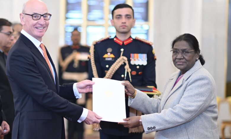 नई दिल्ली। राष्ट्रपति द्रौपदी मुर्मु ने राष्ट्रपति भवन में आयोजित एक औपचारिक समारोह के दौरान तीन देशों के वरिष्ठ राजनयिकों से उनके परिचय पत्र (क्रेडेंशियल्स) स्वीकार किए।