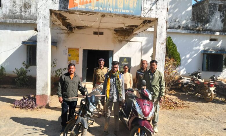 अम्बिकापुर | 18 जनवरी 2026 |थाना लुन्ड्रा पुलिस ने घर से मोटरसाइकिल एवं स्कूटी चोरी के मामले में त्वरित कार्रवाई करते हुए एक आरोपी को गिरफ्तार कर चोरी गए दोनों दोपहिया वाहन एवं घटना में प्रयुक्त औजार को जब्त किया है। पुलिस की इस कार्रवाई से क्षेत्र में वाहन चोरों के खिलाफ सख्त संदेश गया है।