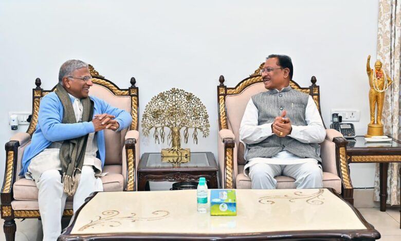 रायपुर साहित्य उत्सव को लेकर मुख्यमंत्री विष्णुदेव साय से राज्यसभा उप सभापति हरिवंश की सौजन्य भेंट