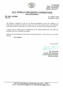 जाति जनगणना को लेकर कांग्रेस का दबाव तेज, AICC OBC विभाग के अध्यक्ष डॉ. अनिल जयहिंद ने रजिस्ट्रार जनरल को लिखा पत्र