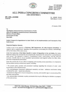 कांग्रेस के AICC OBC विभाग के राष्ट्रीय अध्यक्ष डॉ. अनिल जयहिंद ने जाति जनगणना के क्रियान्वयन और ढांचे को लेकर रजिस्ट्रार जनरल एवं जनगणना आयुक्त को पत्र लिखकर स्पष्टता मांगी है।