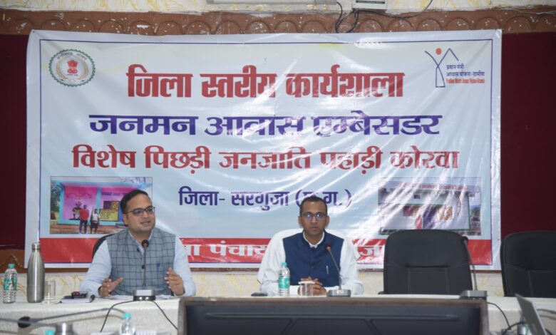 अंबिकापुर, 30 जनवरी 2026।कलेक्टर अजीत वसंत की अध्यक्षता में गुरुवार को विशेष पिछड़ी जनजाति पहाड़ी कोरवा समुदाय के जनमन आवास एम्बेसडरों हेतु जिला स्तरीय कार्यशाला का आयोजन जिला पंचायत सभाकक्ष में किया गया। कार्यशाला में जिला पंचायत के मुख्य कार्यपालन अधिकारी विनय अग्रवाल, संबंधित विभागीय अधिकारी, पहाड़ी कोरवा एम्बेसडर, ग्राम पंचायतों के सरपंच एवं सचिव उपस्थित रहे।