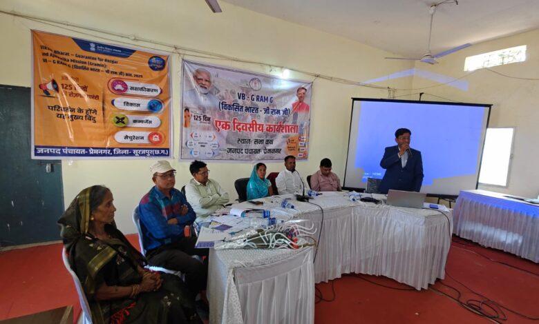 सूरजपुर जिले के प्रेमनगर में विकसित भारत रोजगार एवं आजीविका गारंटी मिशन ग्रामीण 2025 के तहत कार्ययोजना को लेकर एक दिवसीय कार्यशाला सह प्रशिक्षण आयोजित किया गया।