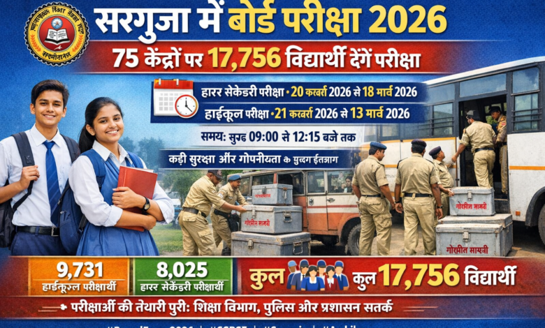 सरगुजा में बोर्ड परीक्षा 2026 की तैयारी पूरी: 75 केंद्रों पर 17,756 विद्यार्थी देंगे परीक्षा