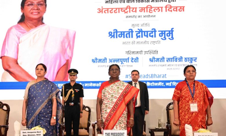 राष्ट्रपति द्रौपदी मुर्मु ने अपने संबोधन में कहा कि आज महिलाएं विभिन्न क्षेत्रों में उल्लेखनीय प्रगति कर रही हैं और नेतृत्व की महत्वपूर्ण भूमिका निभा रही हैं। उन्होंने कहा कि महिलाओं के सशक्तिकरण में सरकार की विभिन्न योजनाओं और पहलों की महत्वपूर्ण भूमिका रही है।