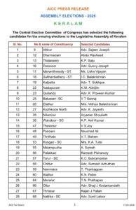 केरल विधानसभा चुनाव के लिए कांग्रेस ने उम्मीदवारों की सूची जारी की