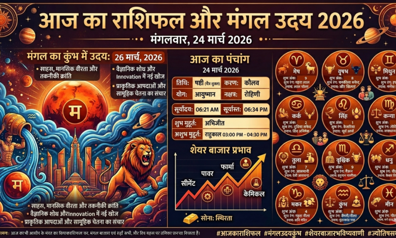 आज का पंचांग और राशिफल 24 मार्च 2026: मंगल का कुंभ में उदय और विशेष ज्योतिषीय गणना