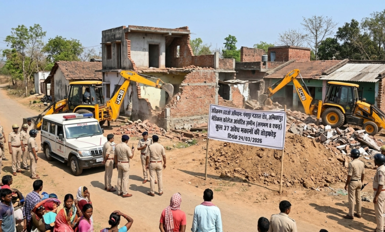 अंबिकापुर महा-कार्रवाई: मेडिकल कॉलेज की 8 एकड़ जमीन से हटा अवैध कब्जा, 37 मकान जमींदोज