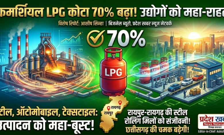 उद्योगों को गैस की कमी से मिली राहत। केंद्र सरकार ने कमर्शियल LPG कोटा 70% तक बढ़ाया। स्टील, ऑटोमोबाइल और टेक्सटाइल सेक्टर में उत्पादन को मिलेगा बढ़ावा।