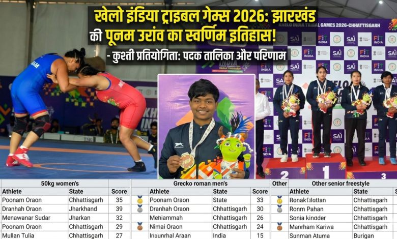 खेलो इंडिया ट्राइबल गेम्स 2026: झारखंड की पूनम उरांव ने कुश्ती में जीता गोल्ड, अम्बिकापुर में पदक विजेताओं की पूरी सूची।