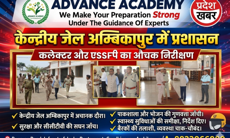 अम्बिकापुर: केन्द्रीय जेल में हड़कंप, कलेक्टर और एसएसपी ने किया औचक निरीक्षण, सुरक्षा और स्वास्थ्य सुविधाओं पर दिए निर्देश