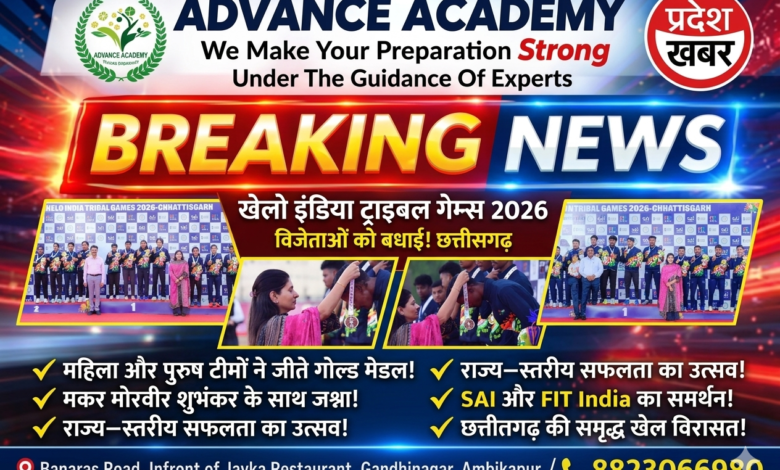 केंद्रीय खेल राज्य मंत्री रक्षा निखिल खडसे ने जगदलपुर के धरमपुरा क्रीडा परिसर में 'खेलो इंडिया ट्राइबल गेम्स 2026' का अवलोकन किया। 3800 प्रतिभागी और 106 स्वर्ण पदकों के लिए हो रही भिड़ंत।