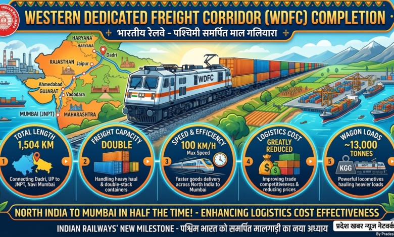 भारतीय रेलवे ने रचा इतिहास! पश्चिमी डेडिकेटेड फ्रेट कॉरिडोर (WDFC) का काम पूरा। अब उत्तर भारत और मुंबई के बीच मालगाड़ियों की स्पीड और क्षमता होगी दोगुनी। जानें कैसे घटेगी रसद (Logistics) की लागत।
