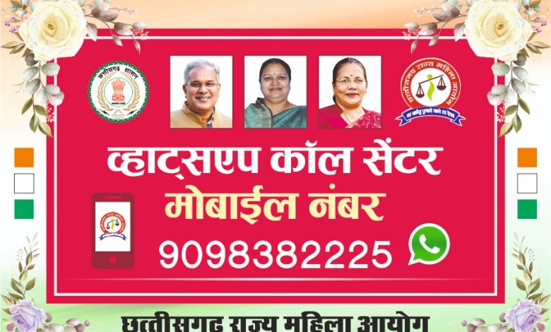 राजनांदगांव : छत्तीसगढ़ राज्य महिला आयोग में होगा व्हाट्सएप कॉल सेंटर : मोबाईल नम्बर 9098382225 में किए जा सकेंगे आवेदन