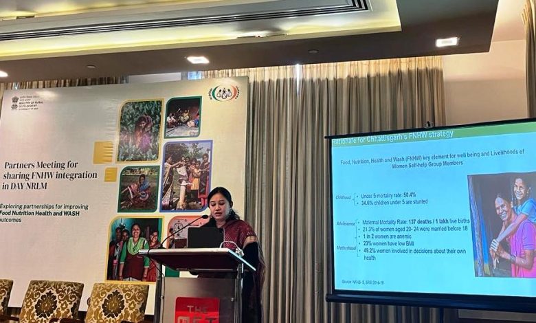 छत्तीसगढ़ में राज्य ग्रामीण आजीविका मिशन (बिहान), यूनिसेफ और पी.सी.आई. की साझेदारी में किए जा रहे कार्यों से ग्रामीण क्षेत्रों में भोजन, पोषण, स्वास्थ्य और स्वच्छता (FNHW – Food, Nutrition, Health and Wash) के स्तर में सुधार आ रहा है। राज्य ग्रामीण आजीविका मिशन की संचालक श्रीमती पद्मिनी भोई साहू ने नई दिल्ली में आयोजित राष्ट्रीय कार्यशाला में प्रदेश में इस संबंध में किए जा रहे कार्यों की जानकारी दी। उन्होंने कार्यशाला में मौजूद वर्ल्ड बैंक, बिल एंड मिलिंडा गेट्स फाउंडेशन, वेदांता, टाटा ट्रस्ट, जिंदल एवं एसडब्ल्यू फाउंडेशन को छत्तीसगढ़ आकर एफएनएचडब्ल्यू कार्यों को देखने एवं राष्ट्रीय ग्रामीण आजीविका मिशन के साथ साझेदारी कर समुदाय के विकास में भागीदारी के लिए आमंत्रित किया।