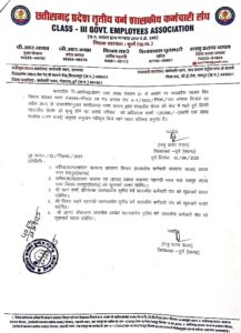 छत्तीसगढ़ में शासकीय सेवकों की मृत्यु पर अनुग्रह राशि बढ़ाने की मांग, तृतीय वर्ग कर्मचारी संघ ने सरकार को सौंपा ज्ञापन