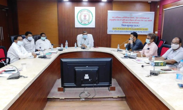 सूरजपुर/19 मार्च 2021/ कलेक्ट्रेट सभाकक्ष में आदिमजाति अनुसंधान एवं प्रशिक्षण संस्थान, रायपुर द्वारा अनुसूचित जनजाति और अन्य परंपरागत वन निवासी (वन अधिकारों की मान्यता) अधिनियम 2006, पांचवी अनुसूची क्षेत्र एवं पंचायत उपबंध (अनुसूचित क्षेत्रों पर विस्तार) पेसा अधिनियम 1996 एवं छ. ग. भू-राजस्व संहिता 1959 की धारा 170 (ख) का एक दिवसीय प्रशिक्षण सह कार्यशाला आयोजित किया गया।