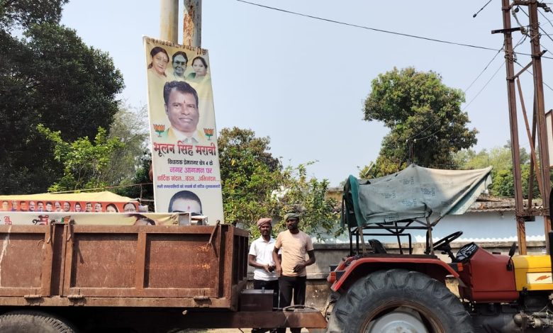 गोपाल सिंह विद्रोही//प्रदेश खबर प्रमुख छत्तीसगढ़//बिश्रामपुर – लोकसभा चुनाव की घोषणाओं के साथ विश्रामपुर नगर पंचायत के साथ-साथ सभी ग्राम पंचायत में आचार संहिता तत्काल प्रभाव से लागू होने का असर दिखने लगा है ।जगह-जगह से राजनीतिक नेताओ का पोस्टर एवं होर्डिंग उखड़ने लगे हैं। कल तक जो होर्डिंग राजनीतिक नेताओं का गुणगान कर रहे थे आज से नगर पंचायत विश्रामपुर के कूड़े करकट रखने वाले गोदाम में रखे जा रहे हैं ।