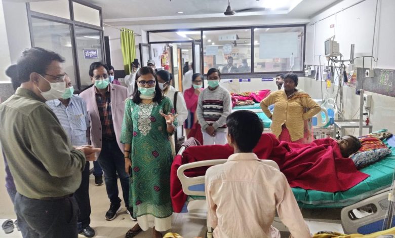 अस्पताल के मातृ शिशु भवन के भूतल के पब्लिक शौचालय में जल रिसाव की शिकायत का निराकरण किए जाने के निर्देश दिए गए, ऐसे मरीज/परिजन जो अस्पताल में अधिक दिनों तक भर्ती है उनके वाहनों की पार्किंग के लिए पास सिस्टम लागू करने के निर्देश दिए। उन्होंने चिकित्सकों से कहा कि वार्डों के बेडशीट प्रतिदिन चेंज की जाए एवं 7 कलर कोडेड बेडशीट की व्यवस्था की जाए। इसी प्रकर एसएनसीयू में भर्ती मरीजों की ट्राईएज के अनुसार कलर कोडिंग की जाए। इस अवसर पर मुख्य चिकित्सा एवं स्वास्थ्य अधिकारी डॉ. जे पी मेश्राम, सिविल सर्जन सह मुख्य अस्पताल अधीक्षक डॉ. अरुण साहू, रेजिडेंट मेडिकल ऑफिसर सह अस्थि रोग विशेषज्ञ डॉ. अखिलेश यादव, शिशु रोग विशेषज्ञ डॉ. आर के मल्होत्रा, मेडिसिन विशेषज्ञ डॉ. देवेंद्र साहू, सर्जरी विशेषज्ञ डॉ. सरिता मिंज, पैथोलॉजिस्ट डॉ. नेहा नलवाया, अस्पताल सलाहकार डॉ. सौरभ कोचर, एवं अन्य अधिकारी-कर्मचारी उपस्थित थे।