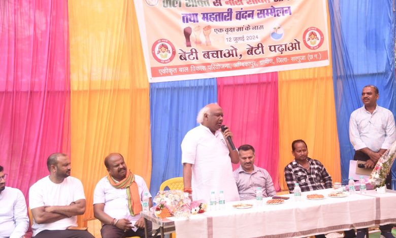अम्बिकापुर/ आंगनबाड़ी केंद्र बंगालीपारा में शुक्रवार को “जल शक्ति से नारी शक्ति“ अभियान के तहत जल संरक्षण विषय पर जन जागरूकता कार्यकम का आयोजन किया। इसी के साथ शासन के “एक पेड़ मां के नाम“ अभियान के तहत वृक्षारोपण कर सुरक्षा की जिम्मेदारी भी ली गई। कार्यक्रम में मुख्य अतिथि के रुप में सरगुजा लोकसभा के सांसद श्री चिंतामणी महाराज उपस्थित रहे। इस दौरान कलेक्टर श्री विलास भोसकर, विभागीय अधिकारी-कर्मचारी, स्थानीय जनप्रतिनिधि, आंगनबाड़ी कार्यकर्ता एवं सहायिकाएं सहित बड़ी संख्या में महिलाएं उपस्थित रहीं।