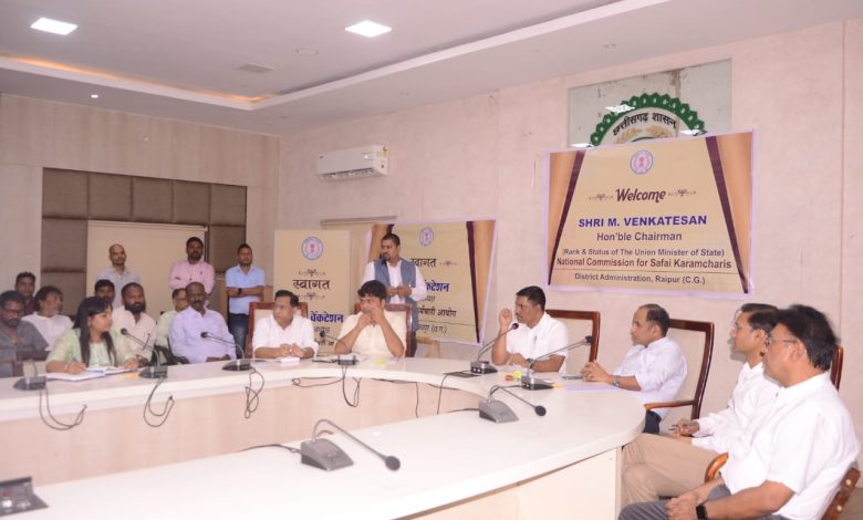 रायपुर // राष्ट्रीय सफाई कर्मचारी आयोग के अध्यक्ष एम. वेंकटेशन ने कलेक्ट्रेट परिसर के रेडक्राॅस सभाकक्ष में आज जिले के कर्मचारियों के कार्याें की समीक्षा की। उन्होंने कहा कि सफाई कर्मियों को यूनिफाॅर्म दी जाए और समय-समय पर स्वास्थ्य परीक्षण कराया जाए। वेंकटेशन ने कहा कि सभी कर्मियों को उनके वेतन समय पर दिया जाएं और पे-स्लीप भी उपलब्ध कराई जाए।