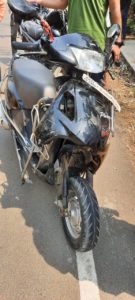 स्कूटी को कार ने जबरदस्त ठोकर मारी स्कूटी की परखच्चे उड़ गए जबकि युवती गंभीर रूप से घायल हो गई