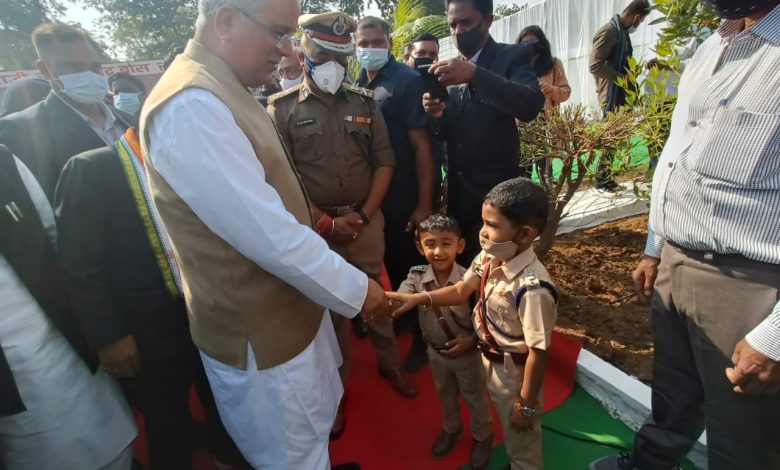 रायपुर, 7 जनवरी 2022 नेताजी सुभाषचंद्र बोस राज्य पुलिस अकादमी, चंदखुरी में उप पुलिस अधीक्षकों के दीक्षांत परेड समारोह में उप पुलिस अधीक्षकों के परिजन भी सम्मिलित हुए थे। इस दौरान उप पुलिस अधीक्षक की वर्दी में दर्शक दीर्घा में मौजूद दो बच्चों ने मुख्यमंत्री का ध्यान अपनी तरफ आकर्षित किया। प्रशिक्षु उप पुलिस अधीक्षक कृष्ण कुमार चंद्राकर के पुत्र कृतज्ञ चंद्राकर और उनके भतीजे रूद्रांश चंद्राकर को पुलिस वर्दी में देखकर मुख्यमंत्री श्री भूपेश बघेल खुद को उनसे मिलने से नहीं रोक पाए और दोनों से विशेष मुलाकात कर उनका उत्साहवर्धन किया। इतनी छोटी सी उम्र में बच्चों के मन में देश सेवा का भाव देखकर वे काफी प्रसन्न हुए और दोनों बच्चों को उनके उज्ज्वल भविष्य की शुभकामनाएं दीं।