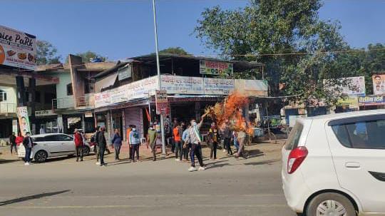 आज छत्तीसगढ़ प्रदेश एनएसयूआई के अध्यक्ष नीरज पांडे के निर्देशा पर छत्तीसगढ़ के मुखिया मुख्यमंत्री भूपेश बघेल के ऊपर हुए एफआईआर दर्ज किए जाने के विरोध में उत्तरप्रदेश के मुख्यमंत्री योगी आदित्यनाथ का पुतला दहन बिश्रामपुर बस स्टैंड में किया