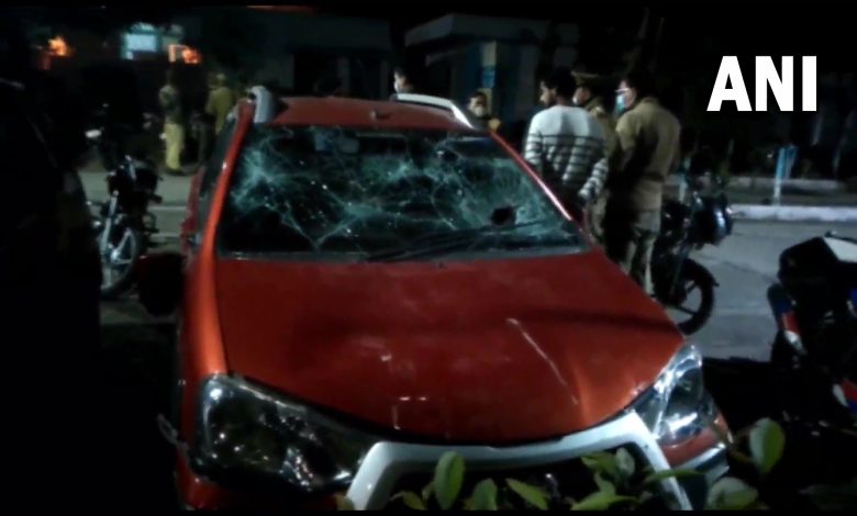 पुलिसकर्मी की कार से एक बाइक की टक्कर होने के बाद भीड़ ने पुलिसकर्मी की पिटाई की।