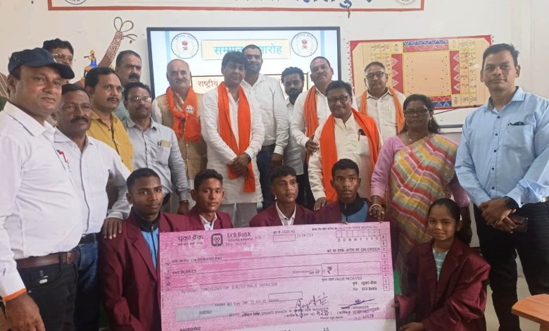 महासमुंद/ राष्ट्रीय शालेय क्रीड़ा प्रतियोगिता पदक सम्मान समारोह का आयोजन गुरूवार को नवकिरण अकादमी मे आयोजित की गई। कार्यक्रम के मुख्य अतिथि विधायक श्री योगेश्वर राजू सिन्हा द्वारा प्रथम स्थान प्राप्त करने वाले खिलाड़ियों को मोमेन्टो, पदक, सम्मान राशि बैक ड्राफ्ट 21000 व ब्लेजर देकर सम्मानित किया गया। इनमें प्रियांशु साहू बेसबाल 17 वर्ष, झलेन्द्र कुमार साहू बेसबाल 19 वर्ष, कु. डोमेश्वरी साहू बेसबाल 14 वर्ष, शा.उ.मा.वि.भोरिंग व बबिलास मुर्मू कबड्डी 14 वर्ष, योगेश सागर कबड्डी 14 वर्ष जे.एम.एस.उ.मा.वि जगदीशपुर शामिल है। साथ ही व्यायाम शिक्षक डॉ. सुनील कुमार भोई शा.उ.मा.वि.भोरिंग व हेमन्त बारीक जे.एम.एस.जगदीशपुर को मोमेंटो से सम्मानित किया गया।