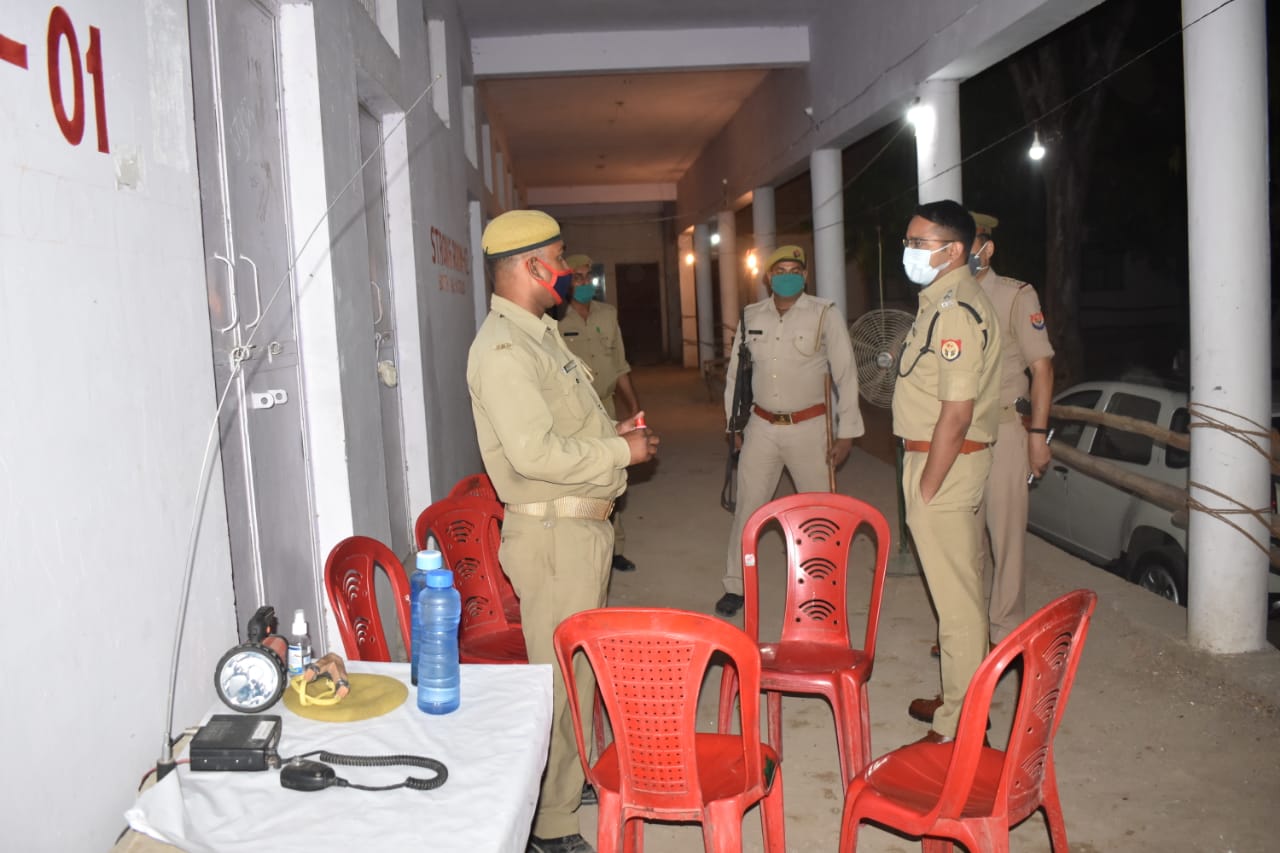 पुलिस अधीक्षक हाथरस विनीत जायसवाल द्वारा के0एल0जैन0 इण्टर कॉलेज सासनी स्थित मतपेटिका सुरक्षा निमित्त स्ट्रॉन्ग रुम का आधी रात निरीक्षण कर सुरक्षा व्यवस्था का जायजा लिया गया । पुलिस अधीक्षक महोदय द्वारा निरीक्षण के दौरान स्ट्रॉन्ग रुम सुरक्षा व्यवस्था ड्यूटी में लगे पुलिसकर्मियों को चैक कर सभी को सतर्कतापूर्वक ड्यूटी करने हेतु निर्देशित किया गया तथा रात्रि में सुरक्षा ड्यूटी में उपस्थित सुरक्षा कर्मियो को अवगत कराया गया कि सभी ड्यूटी के दौरान मुस्तैद रहकर अपनी ड्यूटी करें । किसी भी बाहरी व्यक्ति को स्ट्रॉन्ग रुम के आसपास बिल्कुल नही आने दिया जाये । ड्यूटी में किसी प्रकार की कोई लापरवाही/शिथिलता न बरतें तथा रात्रि के समय भी सतर्क दृष्टि बनाये रखे किसी प्रकार की समस्या होने पर तत्काल उच्चाधिकारियो को सूचित करे ।