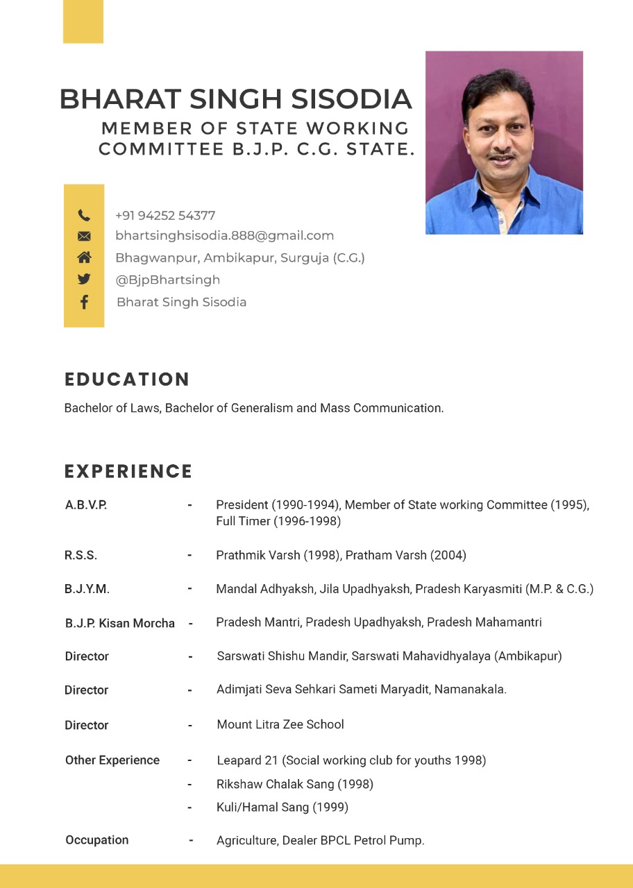 भारत सिंह सिसोदिया बने भाजपा सरगुजा के नए जिलाध्यक्ष