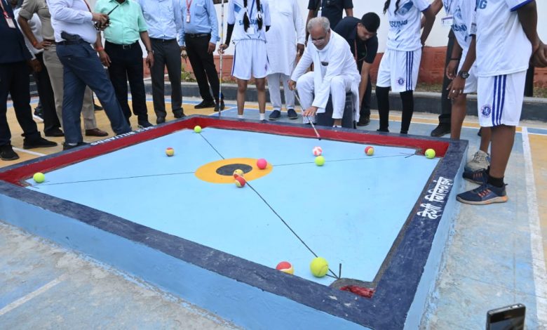 रायपुर : जब मुख्यमंत्री ने जमीन पर बने बिलियर्ड के बोर्ड पर चलाया स्टिक