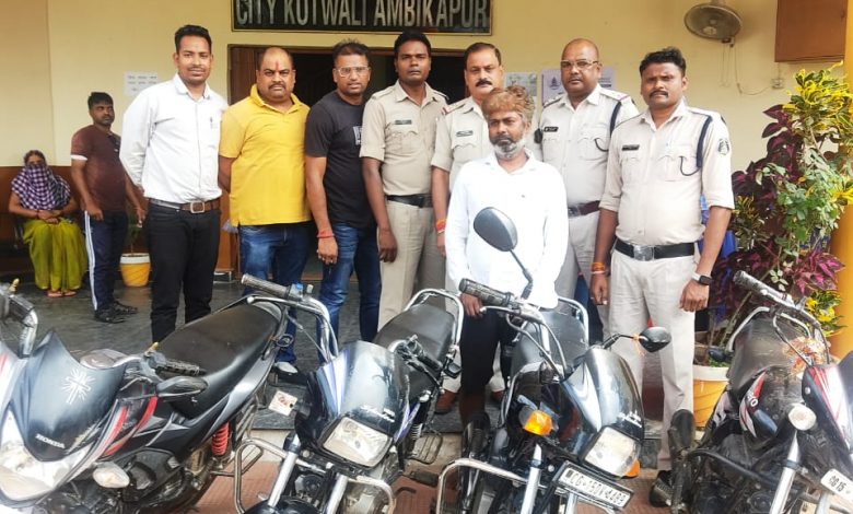 पुलिस अधीक्षक सरगुजा श्रीमती भावना गुप्ता (भा.पु.से.) के निर्देशन मे दुपहिया वाहन चोरी के प्रकरणों मे लगातार अभियान चलाकर की जा रही कार्यवाही ।