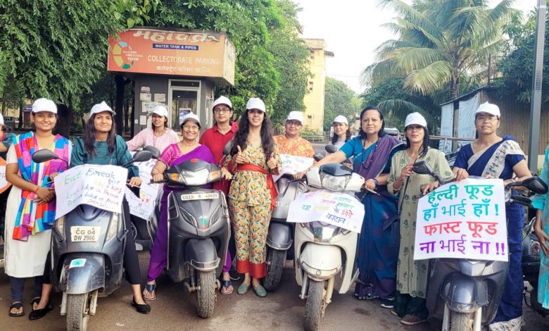 राष्ट्रीय पोषण माह के अवसर पर राजधानी रायपुर के कलेक्ट्रेट गार्डन में पोषण और स्वास्थ्य विषय पर परिचर्चा का आयोजन किया गया। इस मौके पर महिलाओं द्वारा स्वास्थ जागरूकता के लिए स्कूटर रैली भी निकाली गई। कार्यक्रम की मुख्य अतिथि श्री हेमचंद विश्वविद्यालय दुर्ग की कुलपति डॉ. अरुणा पलटा ने स्कूटर रैली को झंडी दिखाकर रवाना किया। रैली ‘हेल्दी फ़ूड हां भाई हां – फ़ास्ट फ़ूड ना भाई ना’, ‘हर घर पोषण देश हो रोशन’, ‘सब्जी सलाद भरपूर खाओ’ के नारों के साथ मरीन ड्राइव में समाप्त हुई।