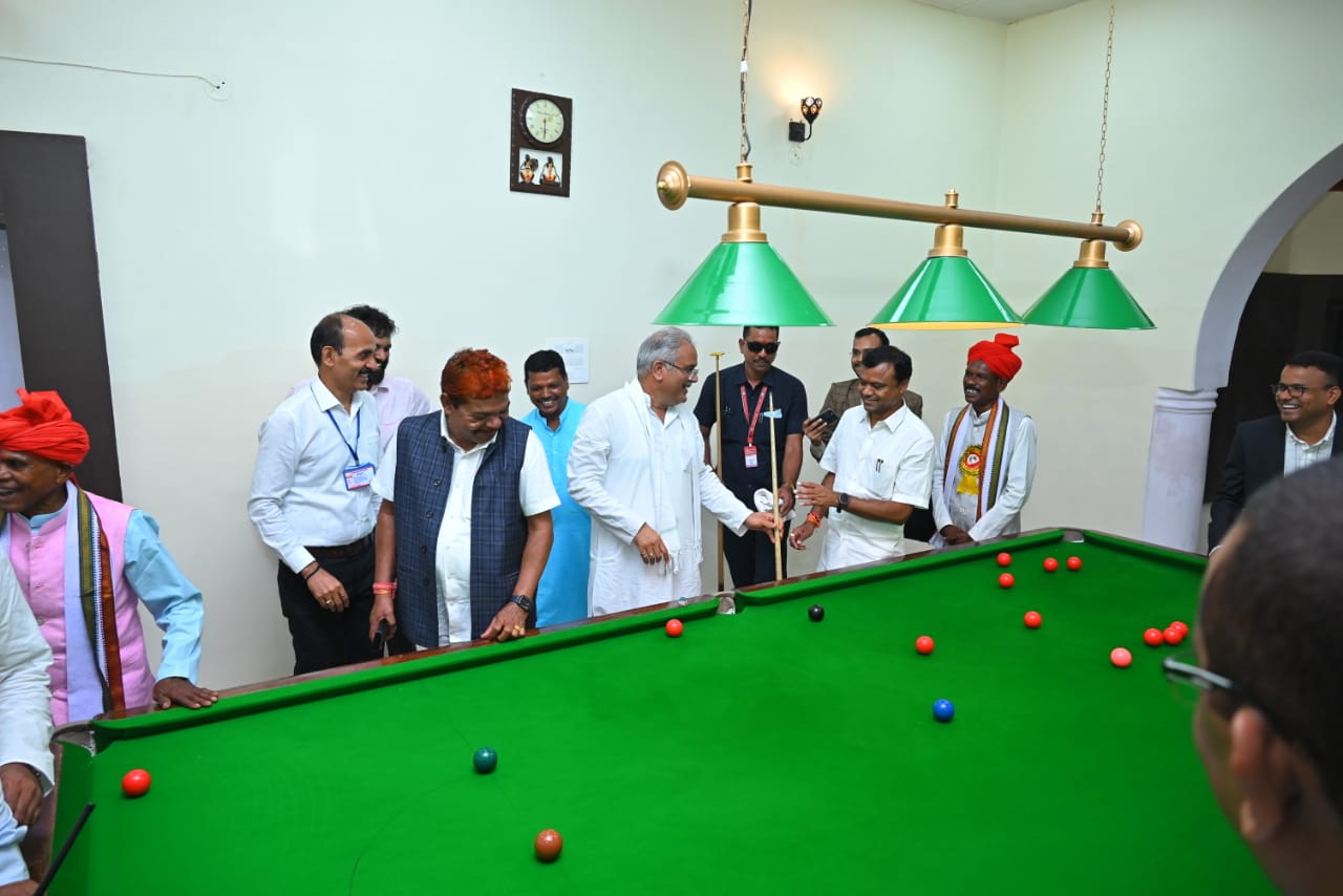 मुख्यमंत्री भूपेश बघेल ने आमचो बस्तर क्लब के बिलियर्ड्स कोर्ट में हाथ आजमाया